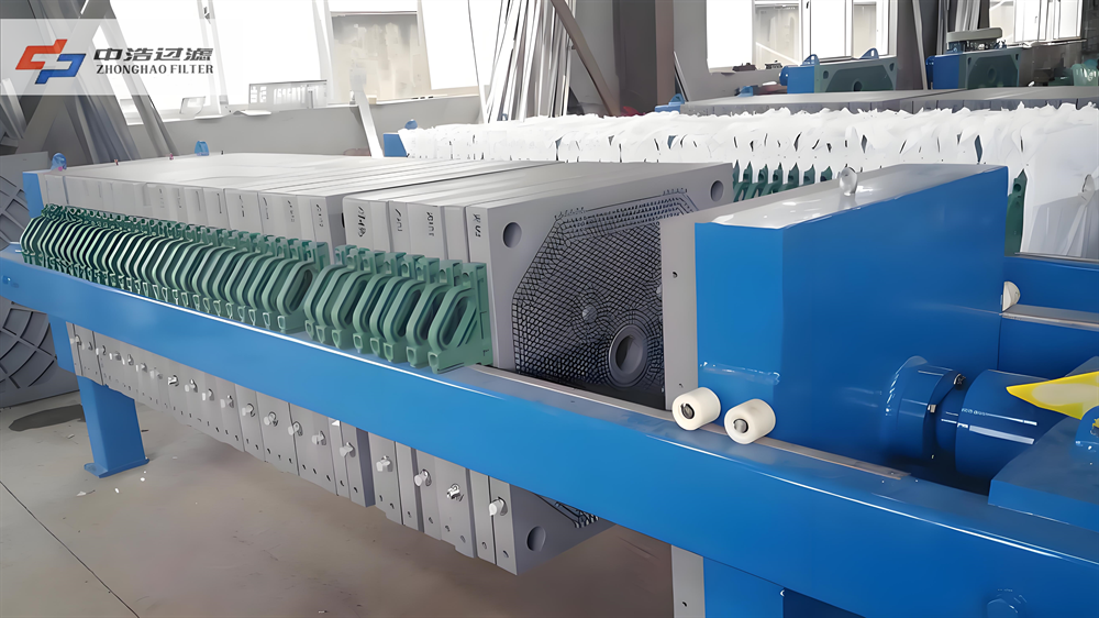 进料与预压:待处理的固液混合物通过进料泵均匀输送至压滤机的滤室内。同时,通过初步施加一定的压力,使固液混合物初步分离,为后续的过滤与压榨过程打下基础。